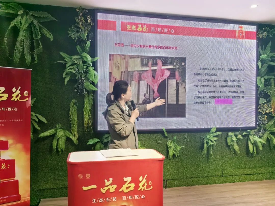 会上,秦绮爽为各位嘉宾详细讲解了《石花酒——生态石花 百年匠心》的品牌内涵,分享了石花酒业的发展历程及取得的荣誉,熟悉了石花酒的楚国宫廷酒、霸王出征酒等天赐尊贵的“历史十二身份”和始终坚守的“甜心水、放心粮、红心曲、匠心酿、真心藏”的“五心级”酿造标准。
