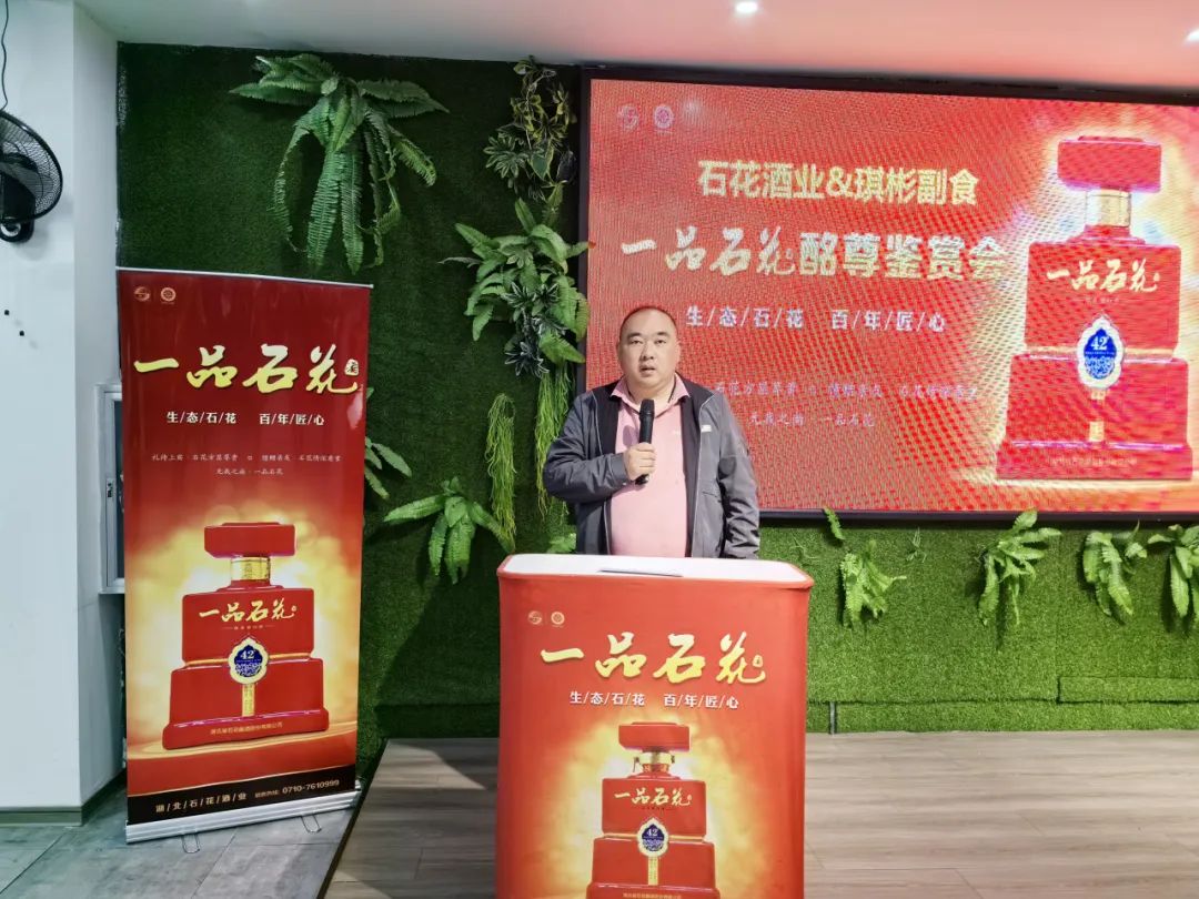 4月29日,石花酒业&琪彬副食“一品石花酒酩尊鉴赏会”在南漳金厨成功召开,石花酒业营销管理总部鄂西南事业部鄂西南大区南漳区域高端酒经理王松林、霸王醉主管秦绮爽以及石花酒业众多核心消费者一起共鉴美酒、共话情谊。