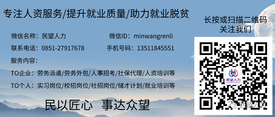 附件:1.遵义市民望人力资源服务有限公司招聘工作人员岗位表(请点击下方二维码查看或下载)