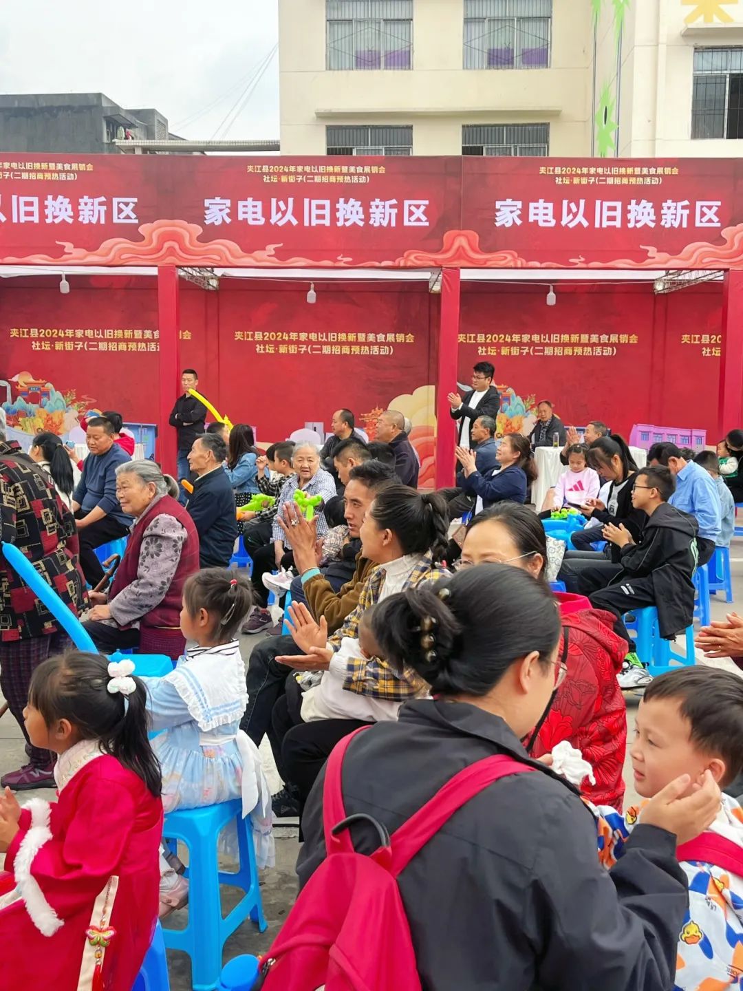 5月1日下午,“家电以旧换新”暨美食展销会及新街子二期招商活动在社坛·新街子正式启动 。此次活动为开放模式,现场共分为5个区域,分别为家电以旧换新区、美食展销区、招商咨询区、二期项目展示区、节目表演区。