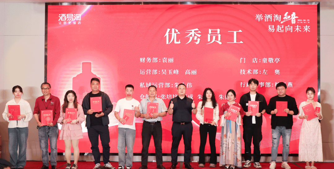 成绩和荣誉,都离不开每一位酒易淘人的勤劳付出。年会上,叶平董事长、周成总经理以及公司其他领导分别为集团做出了卓越贡献的员工,颁以“优秀员工奖”,对他们辛劳表达了最真挚的感谢,同时也希望他们能够再接再厉,与酒易淘平台共同成长,更创佳绩。