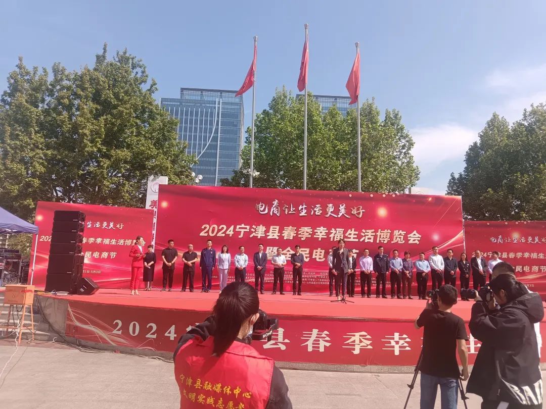 5月1日,小长假的第一天,宁津县文化艺术中心广场锣鼓喧天,彩旗飘扬,宁津县春季幸福生活博览会在这里举行,博览会采取线上直播和线下交易同步进行的方式,为前来参会和不能来现场的群众提供方便。宁津县有关领导和相关部门负责人出席开幕式。