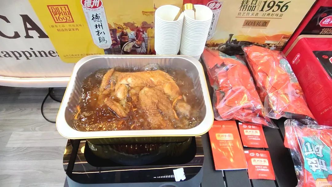 展位旁,冷冻金汤鲜扒鸡香气蒸腾、芳香四溢,吸引着众多游客驻足品尝。为临沂更为全国朋友们再次展示了百年名吃的独特魅力!更有很多顾客在品尝后纷纷咨询购买,让远在他乡的亲人朋友们也能尝到刚刚出锅的扒鸡的新鲜味道。