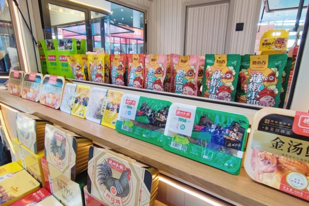非遗美食慰身心,非遗技艺展匠心。“齐风鲁韵烟火里”沉浸式场景内,一辆辆街景车、集装箱集结一堂。德州扒鸡®展位作为其中之一,精心布置,趣味满满,为展会披上华彩战衣。通透的装饰和丰富的产品陈列打破了以往传统老字号的陈旧和刻板,展示了德州扒鸡愈发年轻化的精神品质。