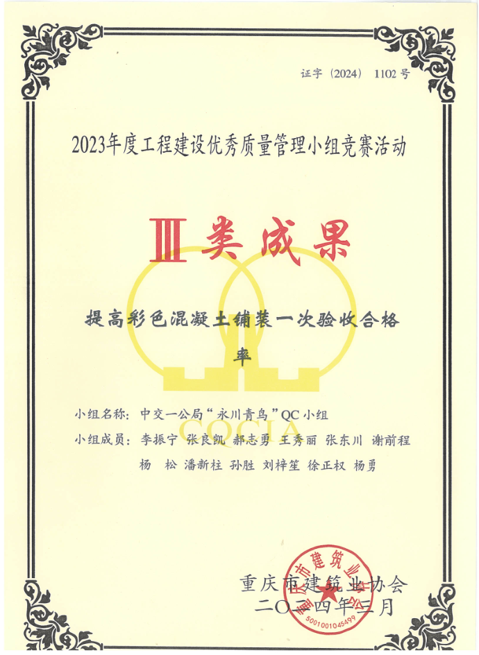 此次多项荣誉的获得是对项目全体参建人员辛苦付出的认可与肯定。下一步,永川会展中心项目将持续推进科技成果转化及质量评优,为公司高质量发展贡献力量。