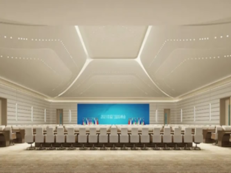 会议中心承担国宾级接待、高端会议等功能,包括1个1.1万平方米超大型多功能主会议室、9个1000平方米大型会议室、36个中小型会议室,配备有数字会议、同声传译、电视转播等多类系统。