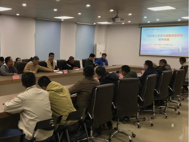 2021年项目伊始,针对大型场馆、重型吊装、高处作业等工程特点举办“施工安全与设备安装技术讲座”,系统宣贯监管重点、安全风险及质量通病防治措施。