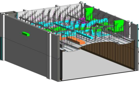 ●在管道综合排布上,应用“BIM”技术深化设计,有效规避管道冲突,解决大型会议室异形天花、桁架等区域复杂管线排布问题;