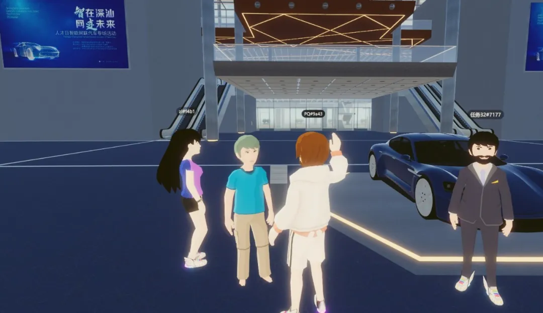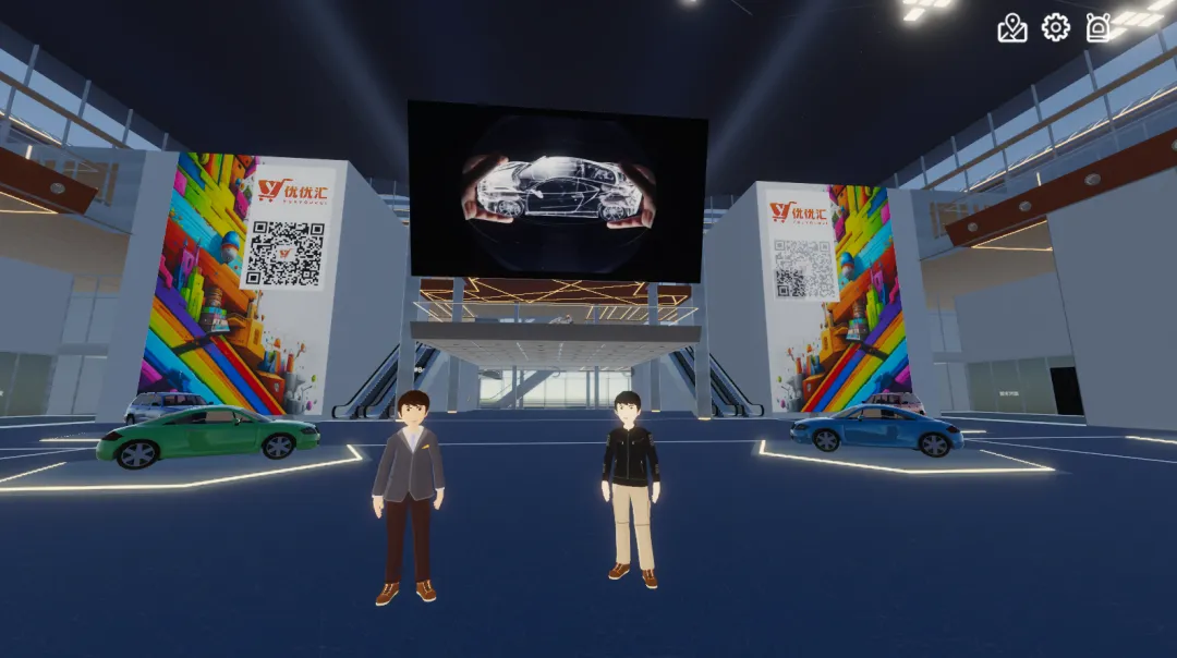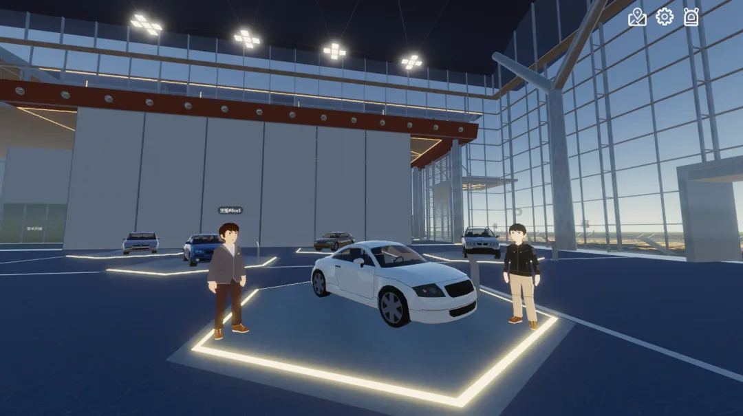 相较于传统的2D展示方式,本平台集成了3D建模与图形渲染技术,在设计方提供的数字孪生模型基础上,进行优化模型、材质处理、增加碰撞体发光体,确保一比一还原真实场景,增强线上办展的临场感,为参展商和观众打造超现实的沉浸式科技体验。▲元宇宙汽车展