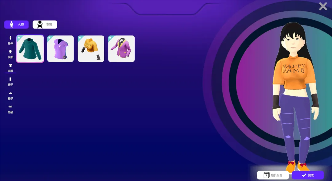 登录平台,用户可以根据自己的喜好定制个性化数字人分身,系统有多种多样的皮肤和服饰可供选择,配备丰富的表情动作。▲人物换装页面