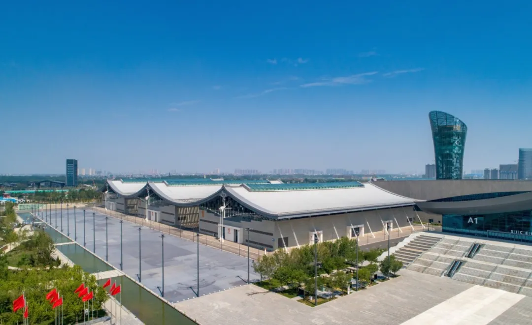 石家庄国际会展中心坐落于石家庄市正定新区核心区、中国(河北)自由贸易试验区正定片区。项目总用地面积64.4万平方米,总建筑面积35.9万平方米,是全球最大的双向悬索结构房建工程。