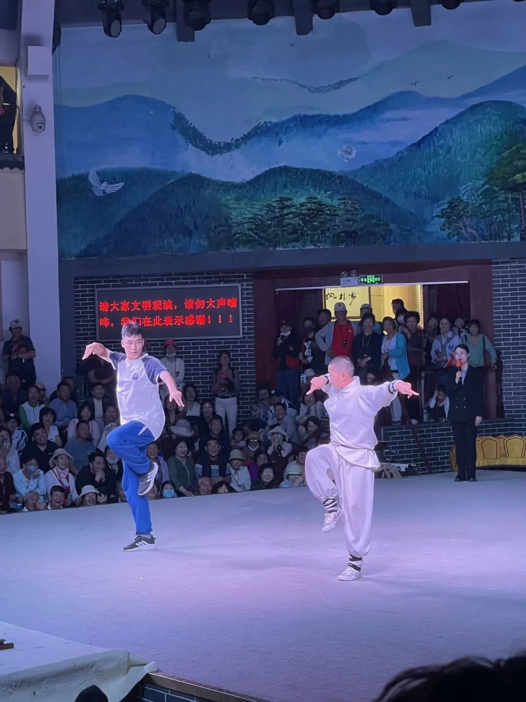 此外,同学们还观看少林武僧的精湛表演,感受武术的力量与美感。更幸运的是,学生还能在武僧的指导下亲自学习一些基本的武术动作,体验武术的精髓与乐趣。