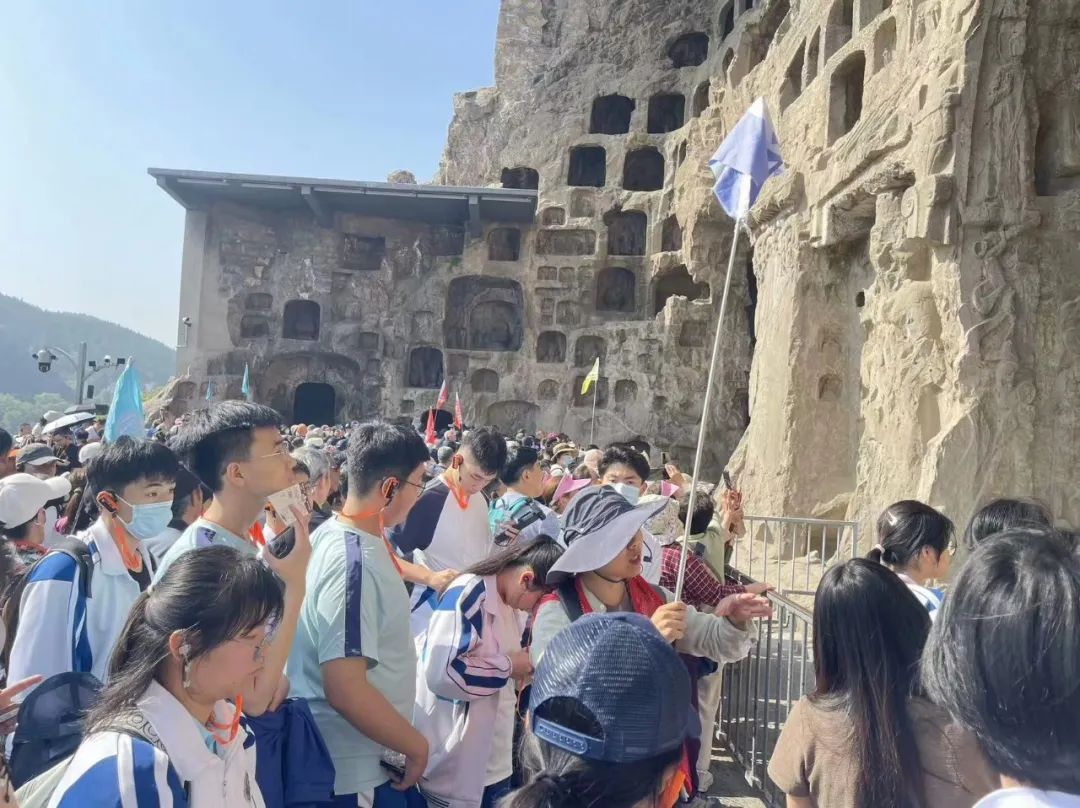 一进入龙门石窟,同学们便被龙门石窟的雄伟壮观所震撼。山峦起伏,石窟错落有致,每一尊佛像都仿佛诉说着古老的故事。在研学导师的带领下,同学们深入了解了石窟的历史背景、文化内涵和艺术价值。