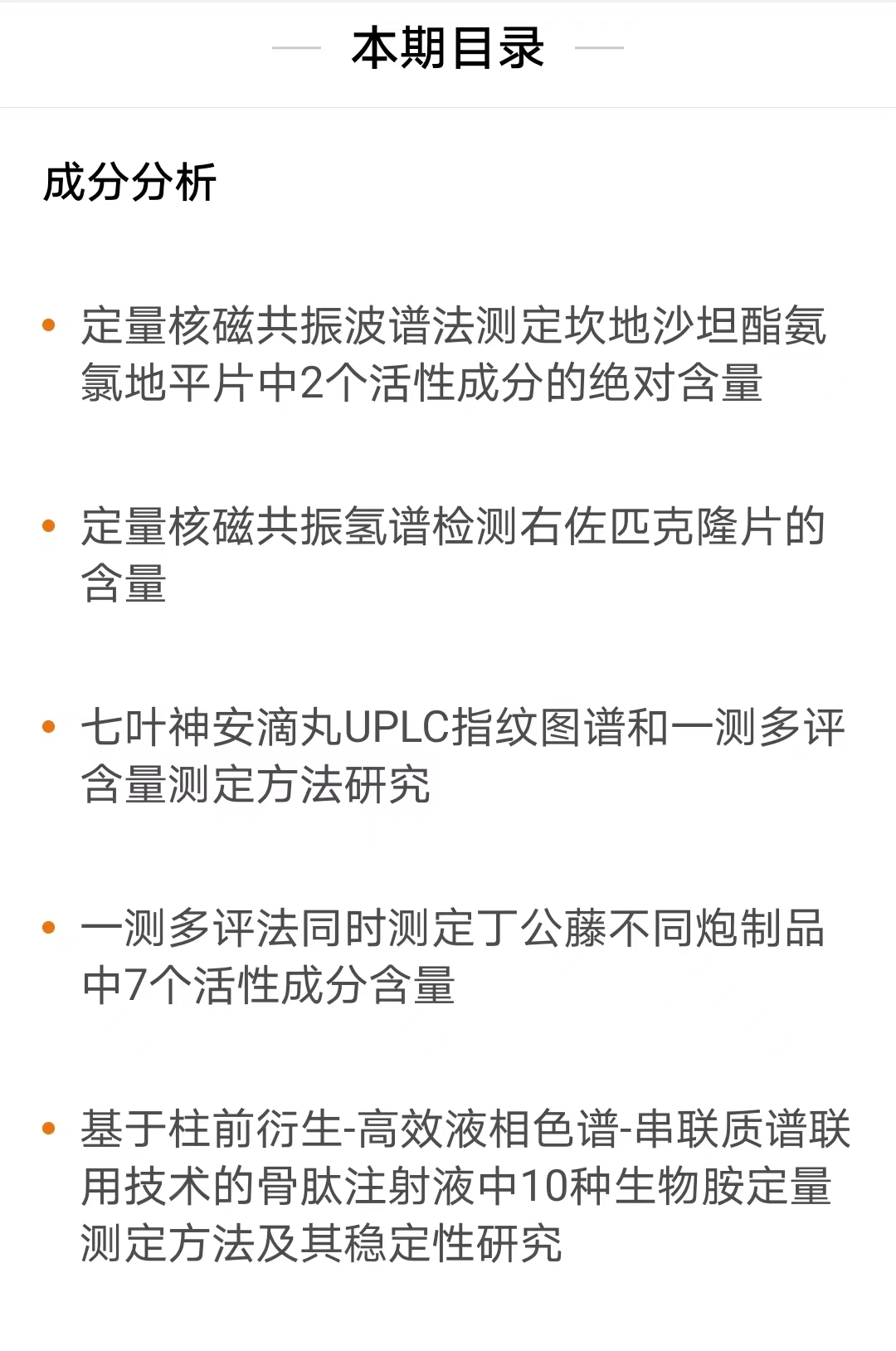 简介:《药物分析杂志》是中国科学技术协会主管,中国药学会主办,中国食品药品检定研究院编辑部编辑出版,国内外公开发行的专业性学术期刊,是中国食品药品检定研究院资深专家、我国药物分析领域首批学科带头人创办的学术期刊。主要栏目:成分分析(Ingredient Analysis)、活性分析(Activity Analysis)、快速分析(Rapid Analysis)、代谢分析(Metabolism Analysis)、质量分析(Quality Control)、安全监测(Safety Monitoring)、生物检定(Bioassay)、过程控制(Process Evaluation)、标准研讨(Standard Deliberation)、经验交流(Experience Notes)、技术研发(Research Technology),以及特约报道(Special Report)、学科动态(Science Dynamic)、专家点评(Expert Comments)、研究快报(Research Letters)、综述专论(Review & Monography)等。