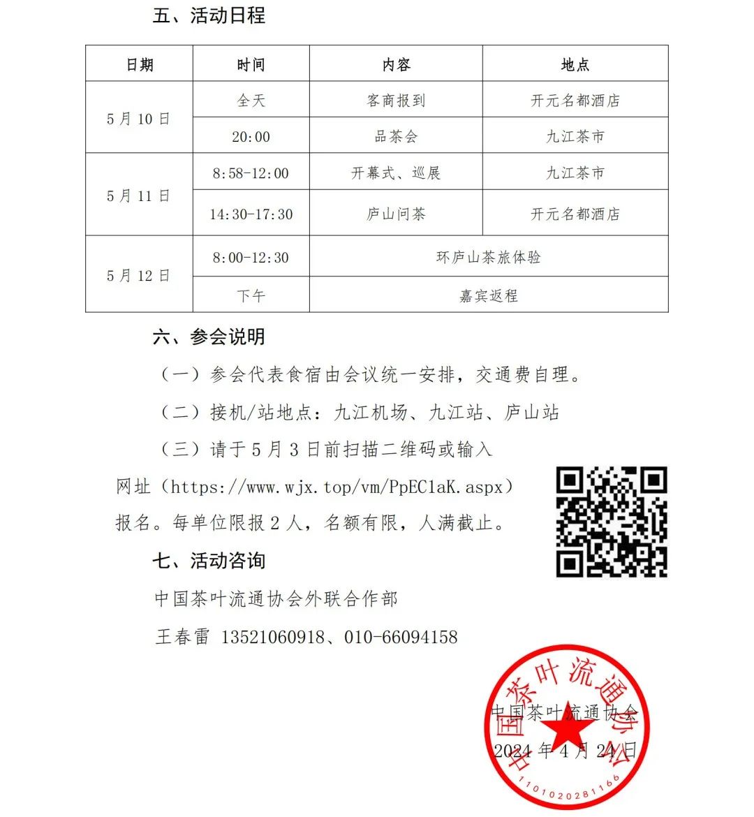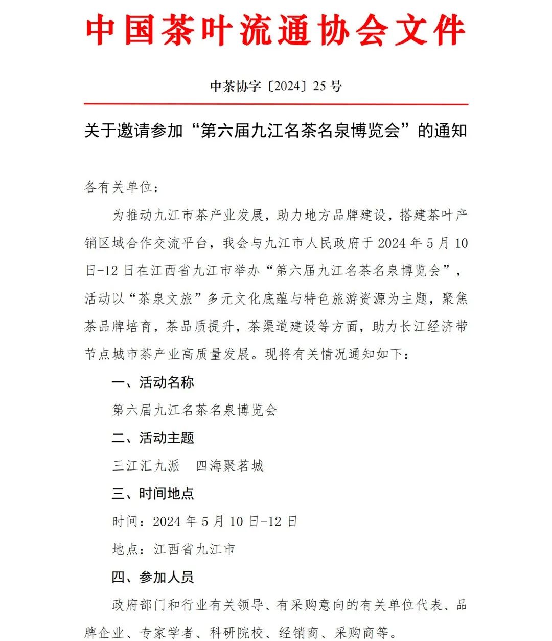 第六届九江名茶名泉博览会,将于2024年5月10日-12日在江西省九江市举办,详情见下文活动通知,欢迎报名参会。