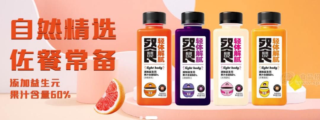 2、添加多种益生元,实现功能升级:健康养生理念深入人心,不少消费者尤其是年轻人在用餐时常常会心存顾虑,进一步激发出市场对佐餐饮品的需求。酸甜日记餐系列果汁,添加多种益生元,实现功能饮品升级,助力消费者实现饮食自由。