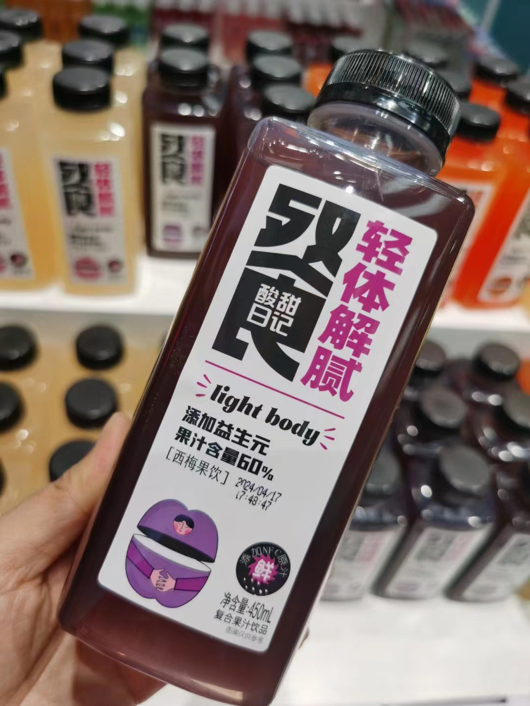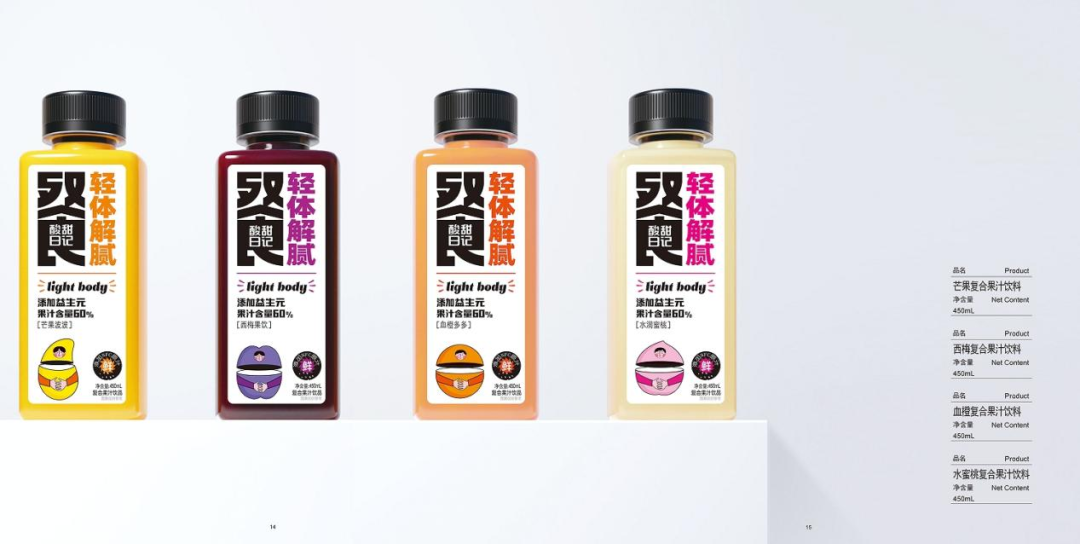 3、450ml容量,锁定就餐场景:市场上的NFC果汁大多是小规格,且价格较高。酸甜日记餐系列果汁采用450ml容量,在家搭配美食更尽兴,朋友聚餐分享也适合,可覆盖各类餐饮店、大中型超市等终端。