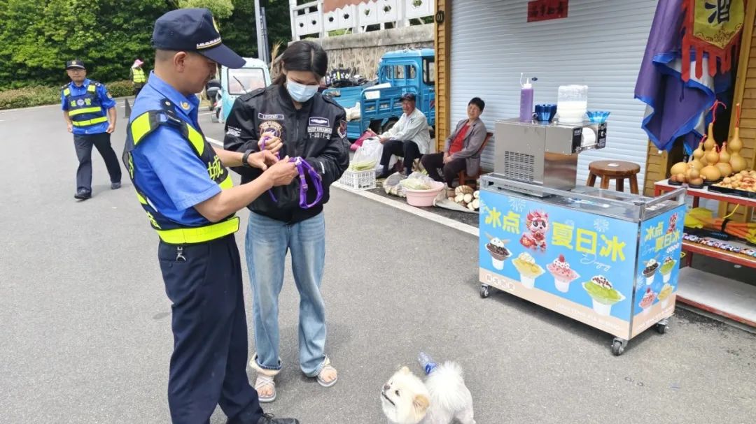 市容秩序促提升。市容净,才能更舒心。采取定点值守+动态步巡相结合的方式,以环境卫生为重点,对流动摊位、散发小广告等行为进行劝离、教育普法,提升景区周边市容环境水平;同时,对遛狗不牵绳、犬粪不及时清理等不文明养犬行为进行及时劝导,向遛狗市民发放牵狗绳,引导市民文明遛狗。