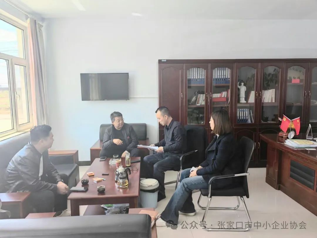 4月30日上午,张家口市中小企业协会会长霍万龙、副会长赵峰、办公室王丽芬深入到万全县张家口强农食品开发有限公司走访,了解会员企业的服务需求,听取会员企业对协会服务的意见和建议。协会按照“服务为本,资源共享,抱团发展 ”的工作思路,帮助会员掌握当前的社会经济动态、最新政策及与企业发展的有关信息。