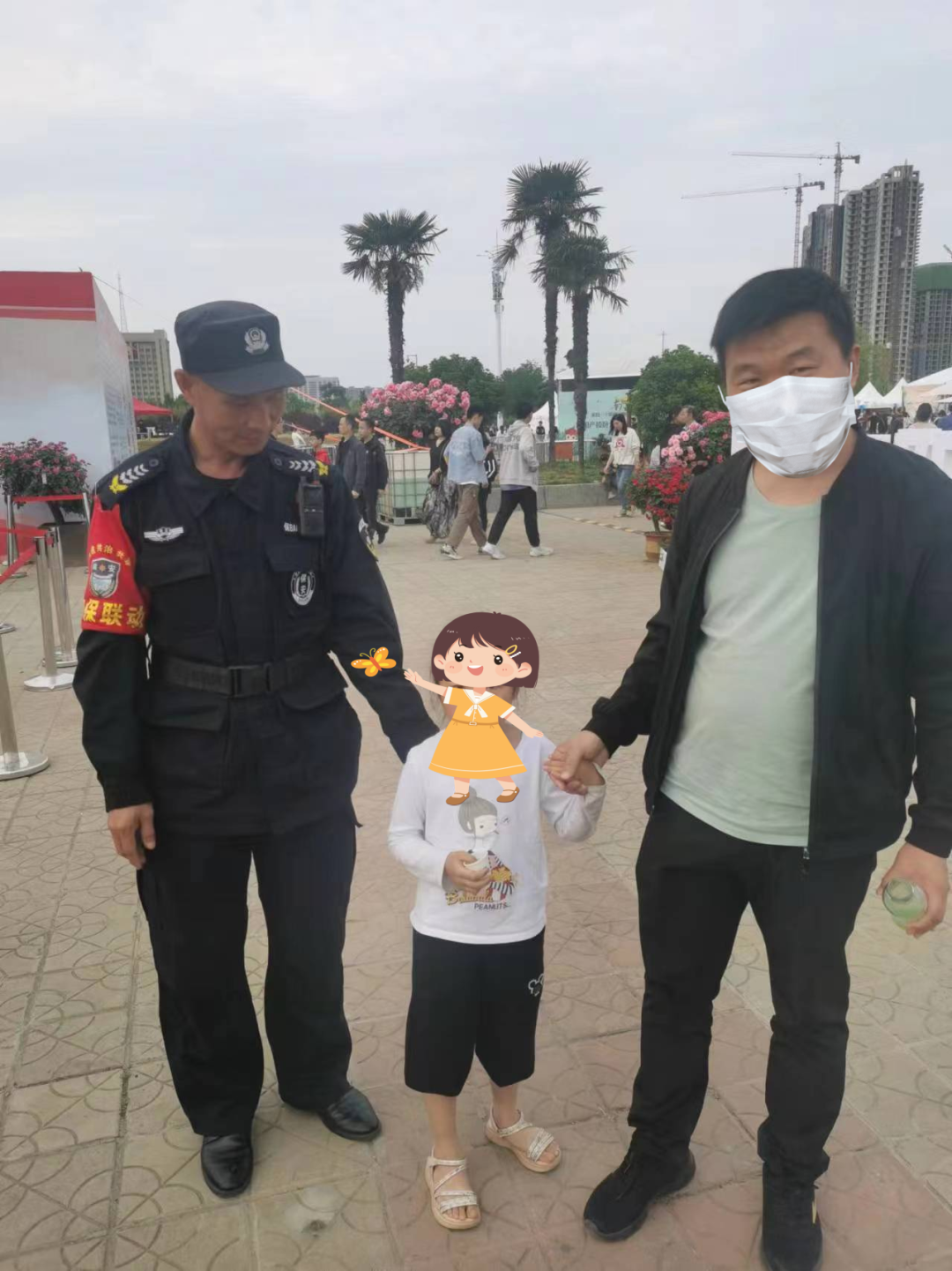 “太感谢你们了,人太多,一不留神孩子就不见了,我正急得团团转,你们可把孩子送到了,多亏你们了!”一名男子激动地说。5月2日,在解放广场月季博览会东部展区,一名小女孩与家长走失,一边哭泣一边焦急张望,产投集团工作专班安保人员发现情况后立即上前询问,获悉联系方式后立即与家长取得联系,最后成功找到家长。
