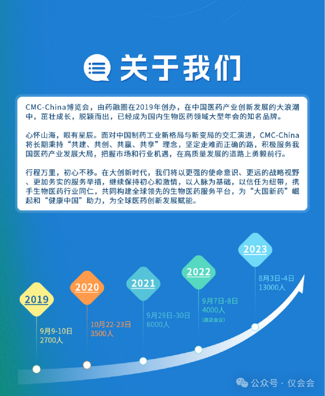 2024年8月15-16日将在苏州国际博览中心举办第六届CMC-China中国国际生物&化学制药博览会。CMC-China博览会以研发为主线,串联医药上下游,以圈友信任为纽带,帮助大家“寻找到下一个合作伙伴 ”,自2019年以来,我们已成功举办5届,品牌影响力持续提升,其中2023年8月举办的第五届CMC-China博览会报名人数超过万人到场,规模和影响力大幅提升。