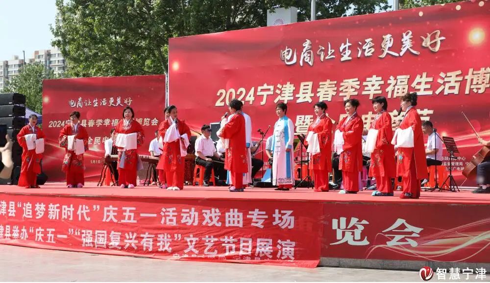 “春博会”期间,现场还设有丰富多彩的文化惠民演出,展现宁津文化魅力。美轮美奂的舞姿、别具神韵的唱腔、优美动听的旋律吸引了大批群众驻足观看。宁津各界文艺爱好者用一个个取材于日常生活的文艺节目,歌颂幸福宁津美好新生活。