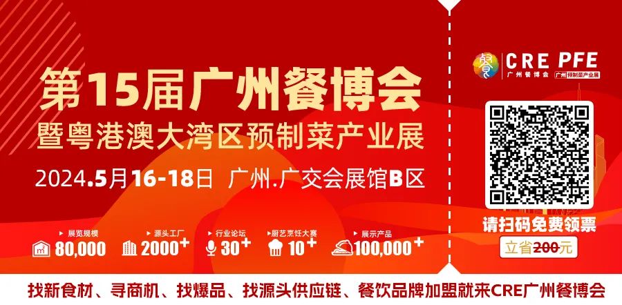 领取CRE·2024第15届广州餐博会暨大湾区餐饮预制菜产业展免费参观入场门票