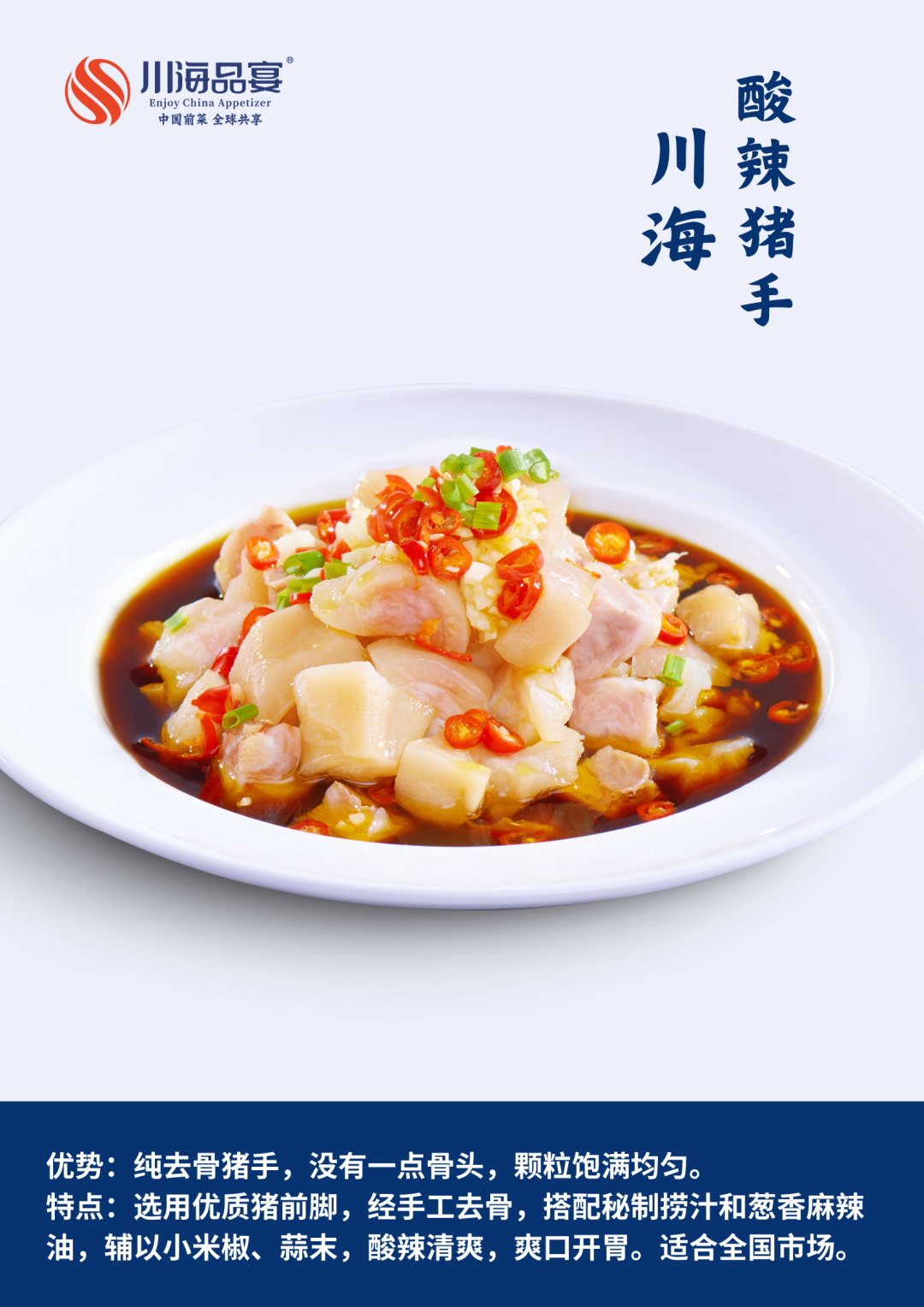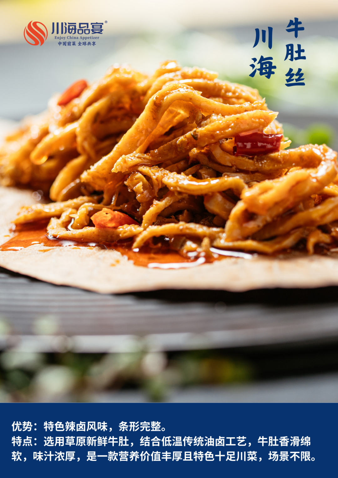 公司成立于2018年,拥有强大的研发团队和创新的开发理念,将传统和创新充分融合。我们传承川味前菜之经典,打造完善的川味前菜生产供应链体系,注重产品的安全与稳定,让餐饮企业在前菜出品上更加标准与高效。(点击了解更多内容)