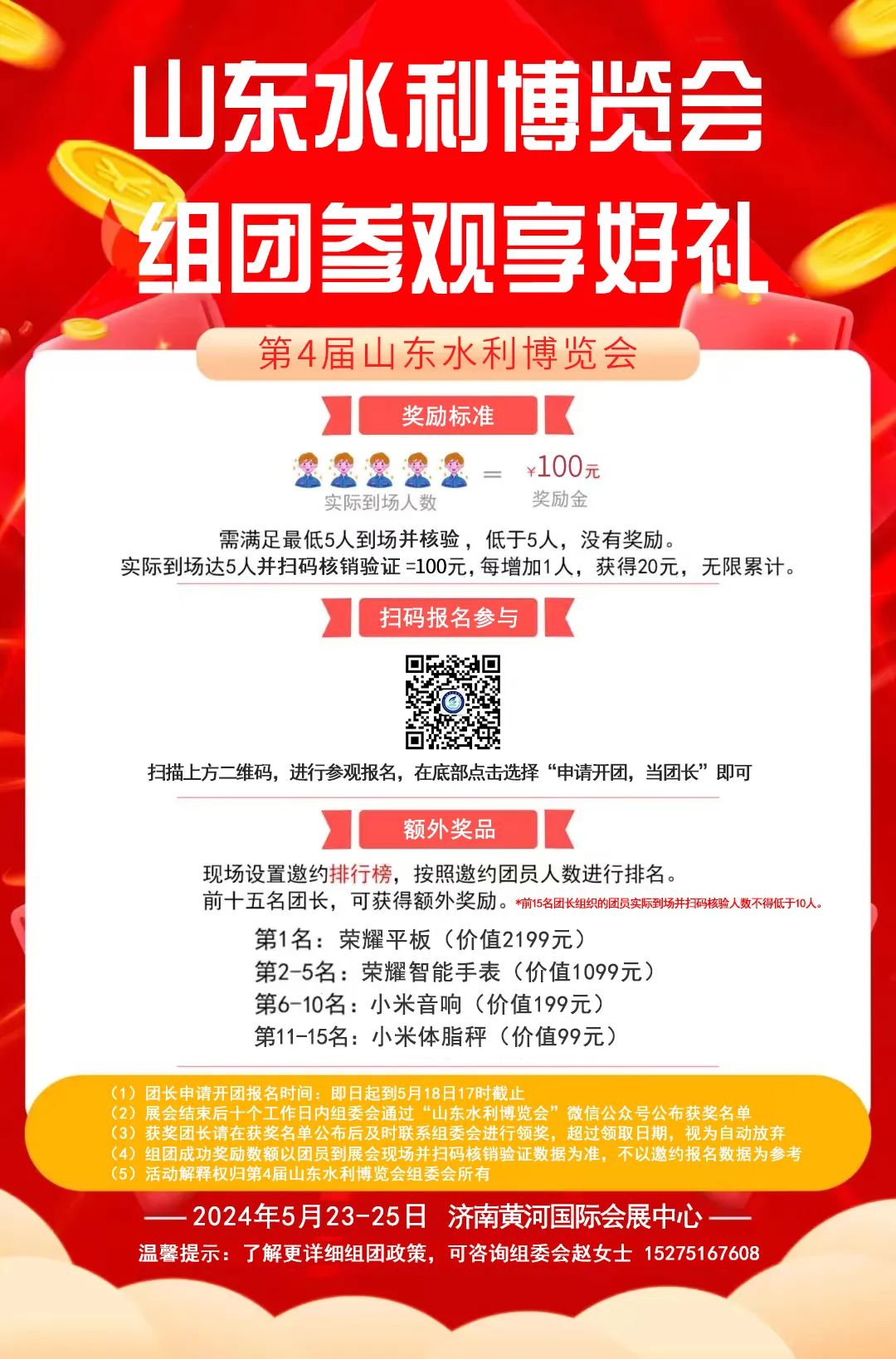 (5)具体获奖人员及金额,组委会将在展会结束后10个工作日内,在“第4届山东水利博览会”微信公众号公布;