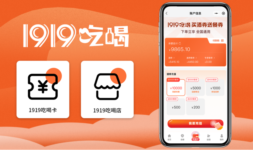 对消费者来说,买酒送餐,用户在1919吃喝小程序充值完成后,平台1:1免费赠送餐券,可到1919全国线上线下全渠道提酒、到已入驻1919的餐厅享受“霸王餐”。花一样钱体验两大服务,消费者切实享受到了餐酒融合的溢价体验和真金白银的红利优惠。