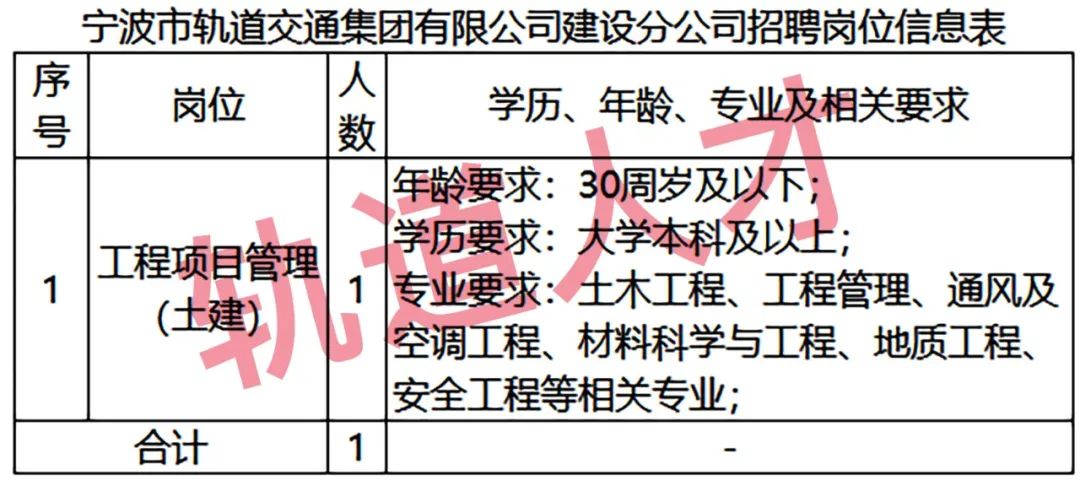 1、宁波市轨道交通集团有限公司建设分公司2024年度社会招聘岗位公告(第一批)(5.19)