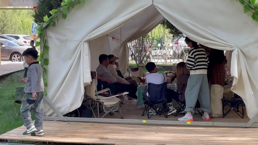 随着“五一”假期的到来,玉水苑展销会热闹非凡,展馆人潮涌动,据统计,园区每日客流量均超过1.2万人次,管委会工作人员以及公安交管部门在展馆内外引导交通、维持秩序,为市民、游客的出行游玩营造良好出行环境。此外,玉水苑迪世嘉儿童乐园、巴尔斯城市野奢营地、山楂树营地等户外休闲娱乐新业态更是持续火爆,在迪世嘉儿童乐园售票口、热门项目附近,等待的游客已经排起了长队。在网红营地中,游客们或聊天谈笑、或打卡记录,尽情享受玉水苑别样的美景。