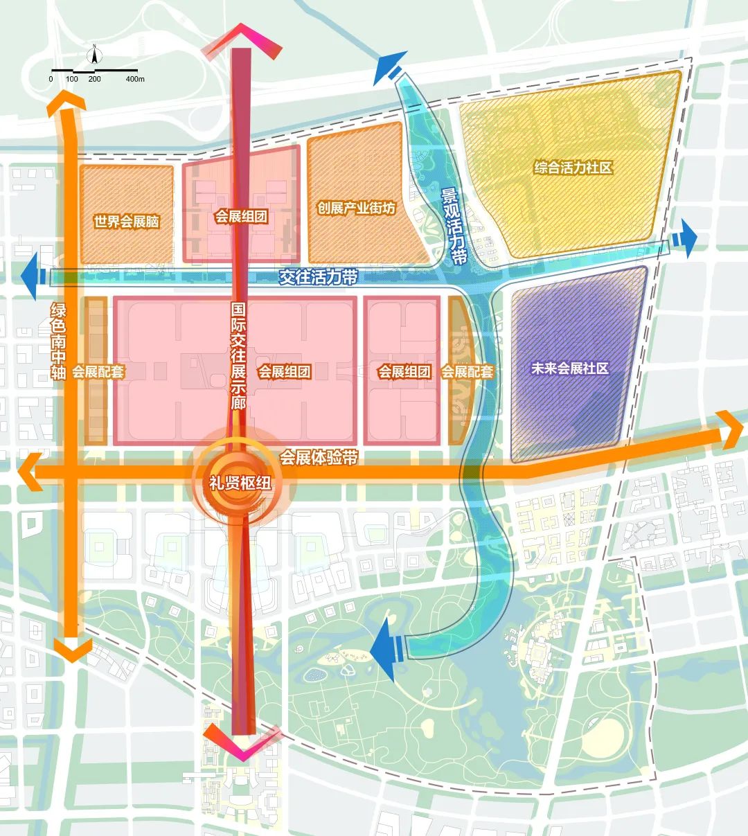 《规划》还对会展片区进行多维度设计,“双十字”景观格局,生态、低碳、复合、多元、充满活力的展城风貌,智能便捷的交通服务体系,饱含人文历史底蕴的地名规划,充分展现会展片区的历史文化底蕴和时代风采。