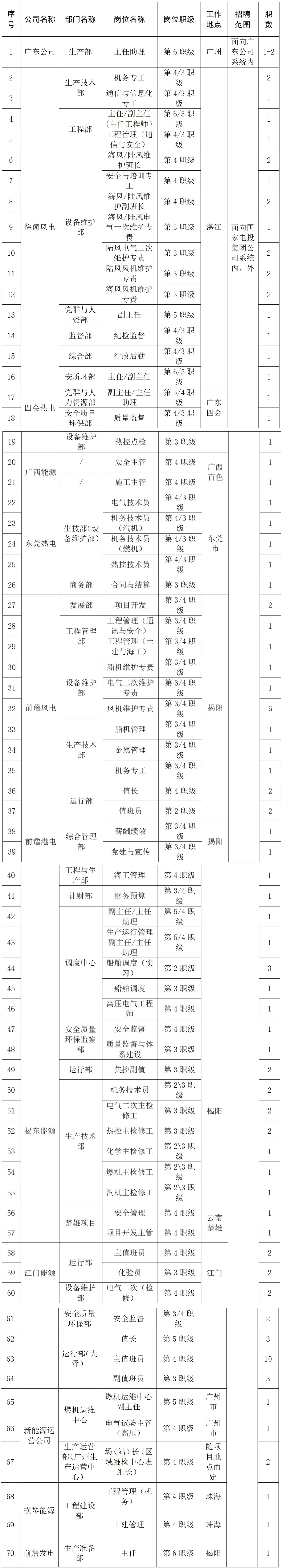 根据广东公司工作需要和招聘管理相关规定,现就公司本部及所属三级单位共计70个岗位进行公开招聘。具体如下: