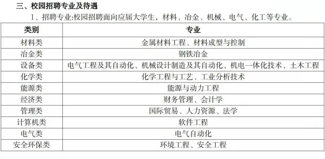 三、校园招聘专业及待遇