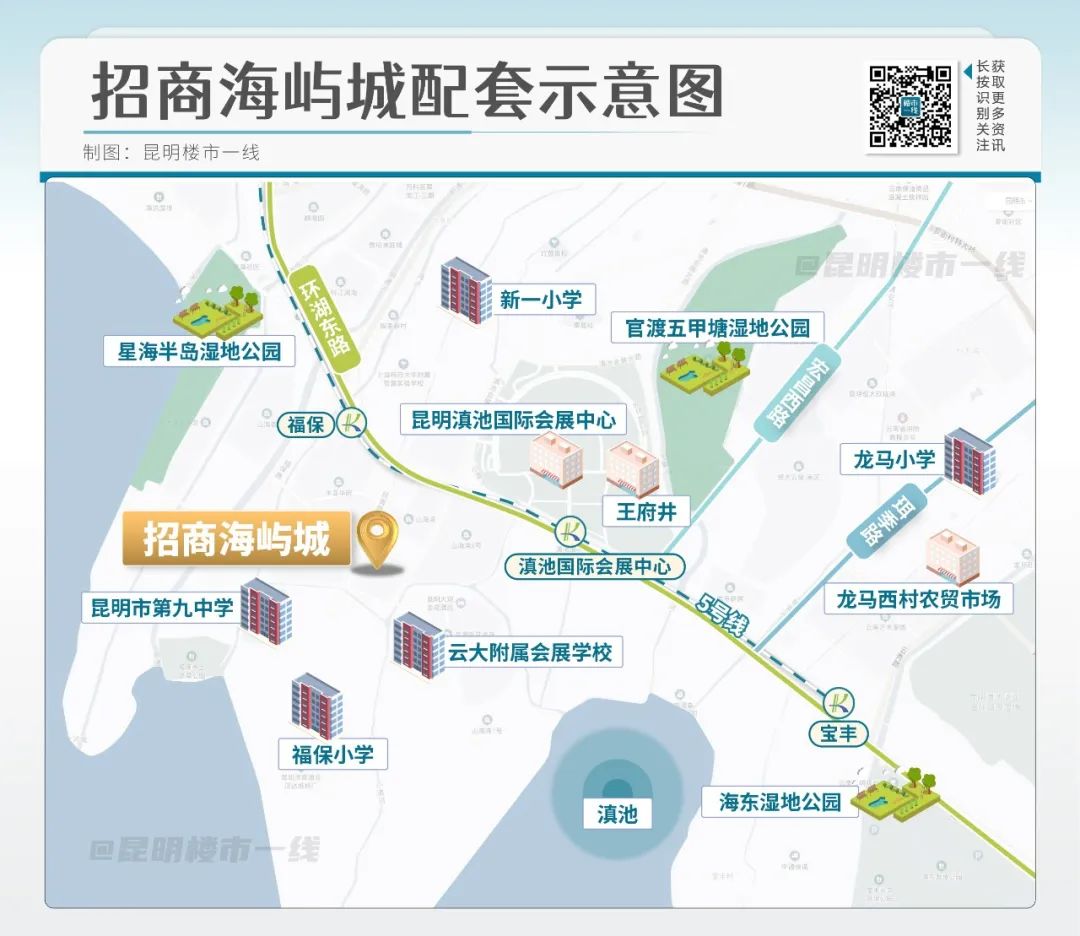 招商海屿城位于会展片区,紧邻昆明滇池国际会展中心,为板式低密精装洋房。