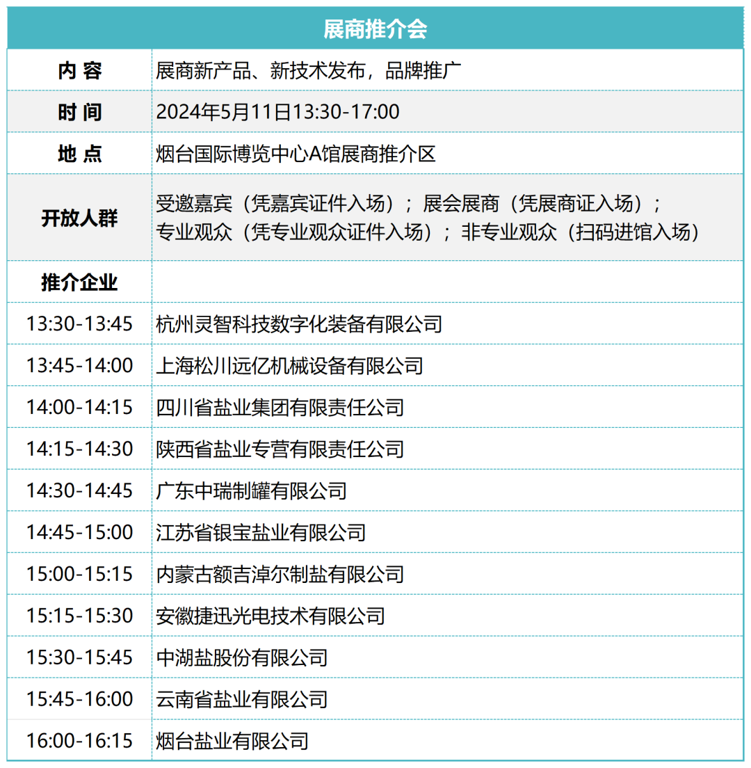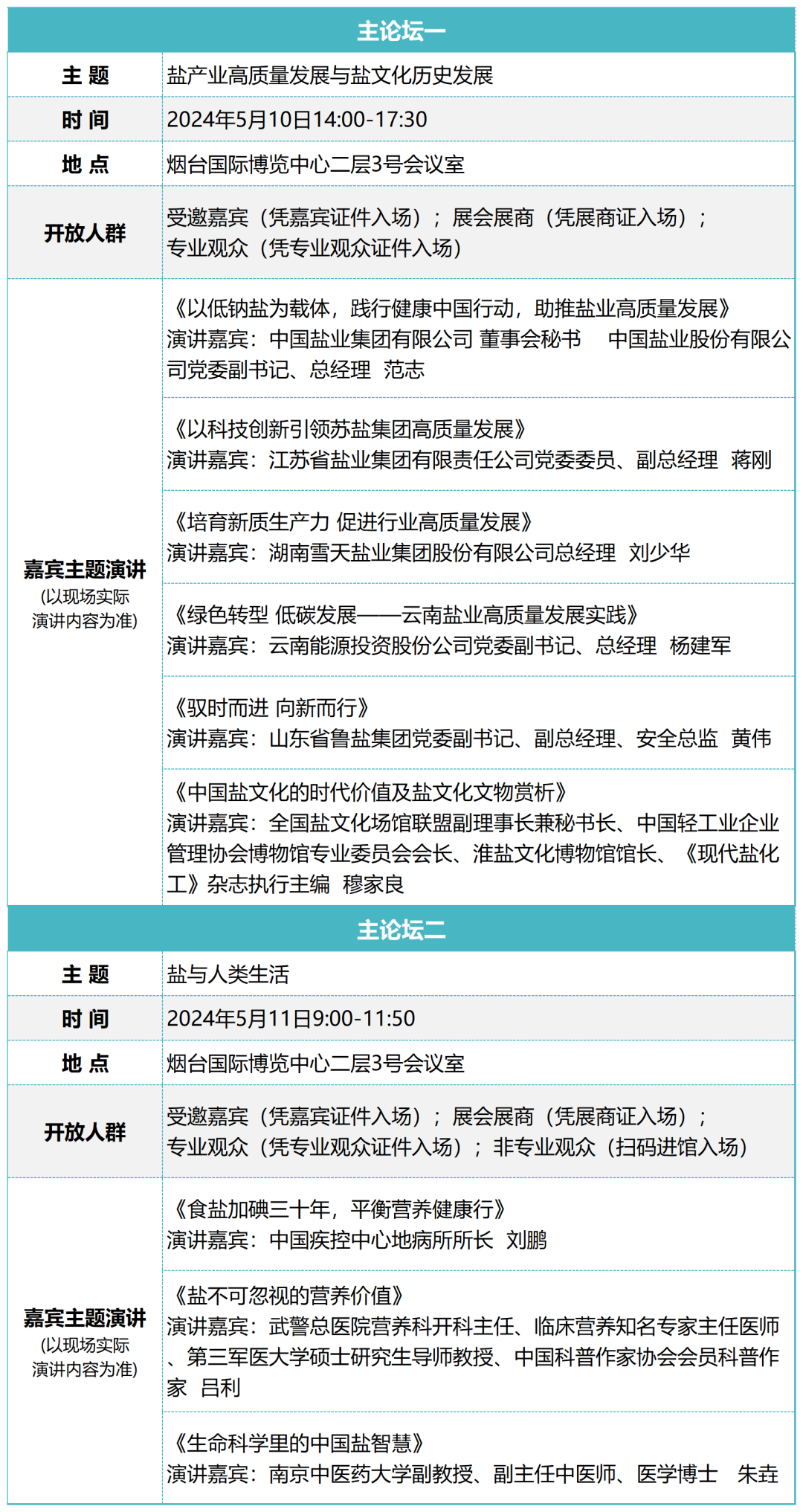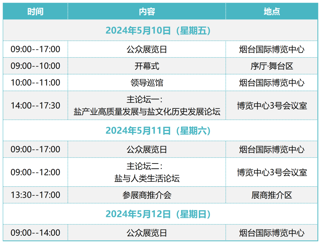 倒计时3天!2024中国盐业全产业链博览会即将于5月10日-12日在烟台国际博览中心举办。组委会为您准备一份超全参观指南,公众开放时间、展馆展区导览、主题论坛安排、同期推介会等诸多信息一键收藏,助您高效逛展!