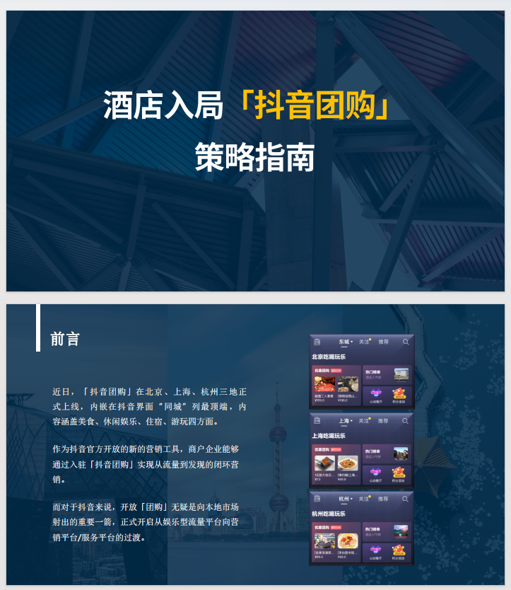 分享一份《抖音商家团购策略指南:酒旅行业》内容包含: