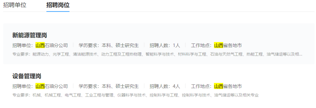 中国石化山西公司2024年招聘公告