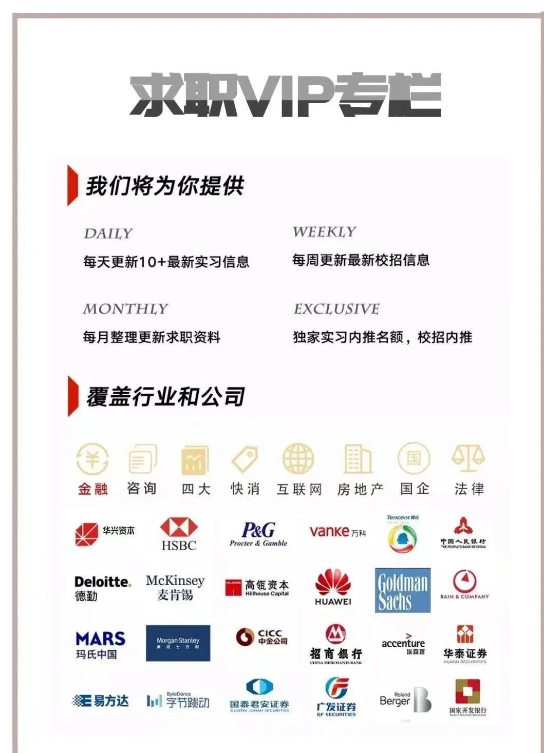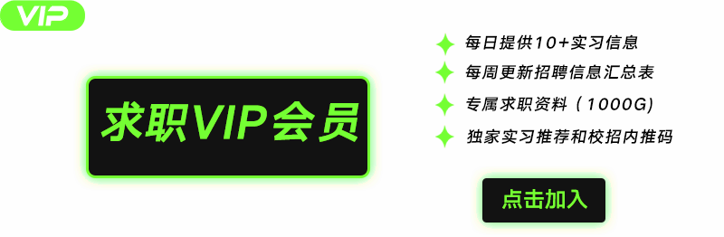 加入求职VIP会员,拿Dream Offer✨???80%的优质offer掌握在20%的同学手中,主要原因并不是你的能力比别人差,而在于对于信息获取的速度总能快人一步!!