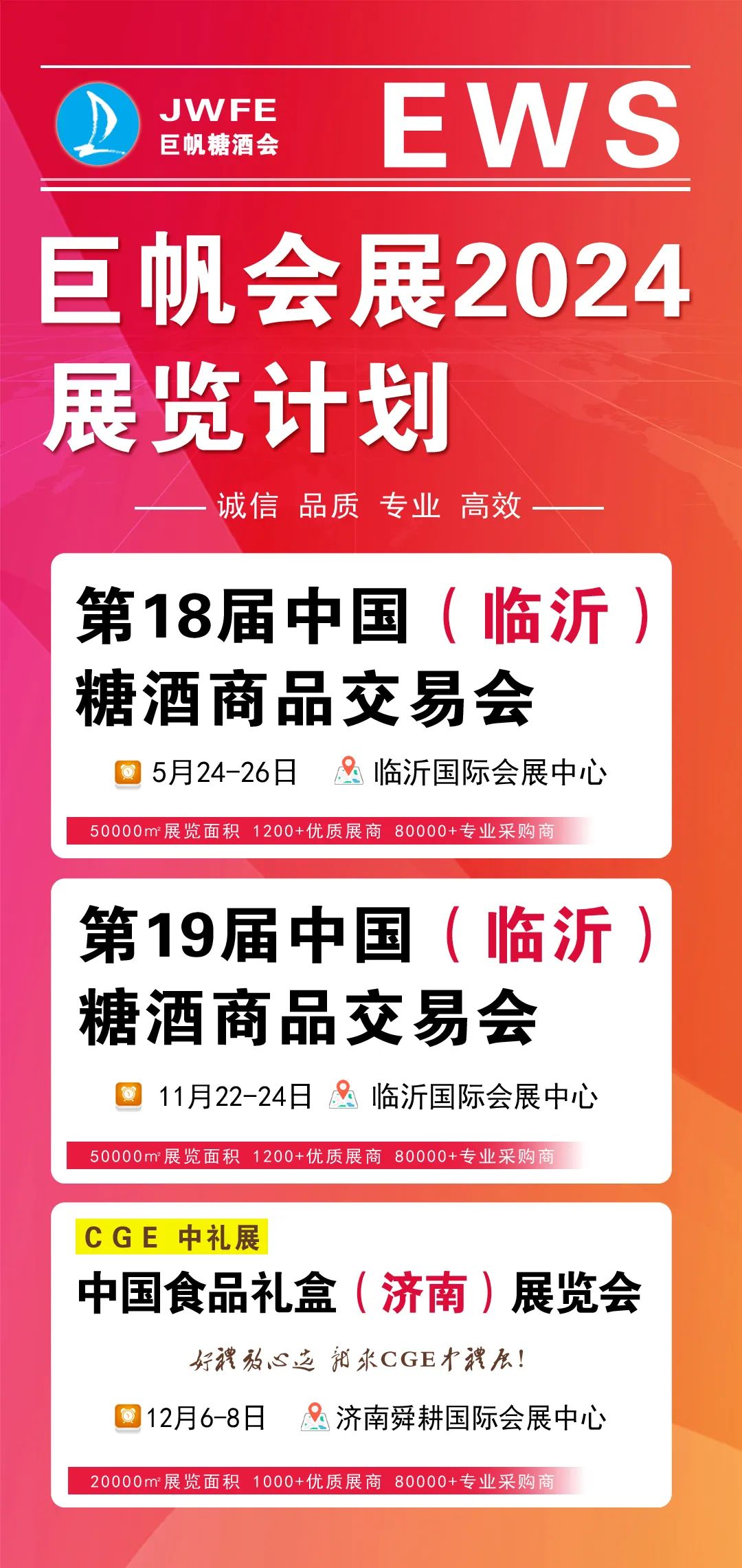 以“促销费、惠民生、添活力”为主题的2024第18届中国(临沂)糖酒商品交易会即将于5月24-26日在临沂国际会展中心(河东区)盛大举办,CLWFF临沂糖酒会组委会期待与新老朋友一起共享酒食新商机。