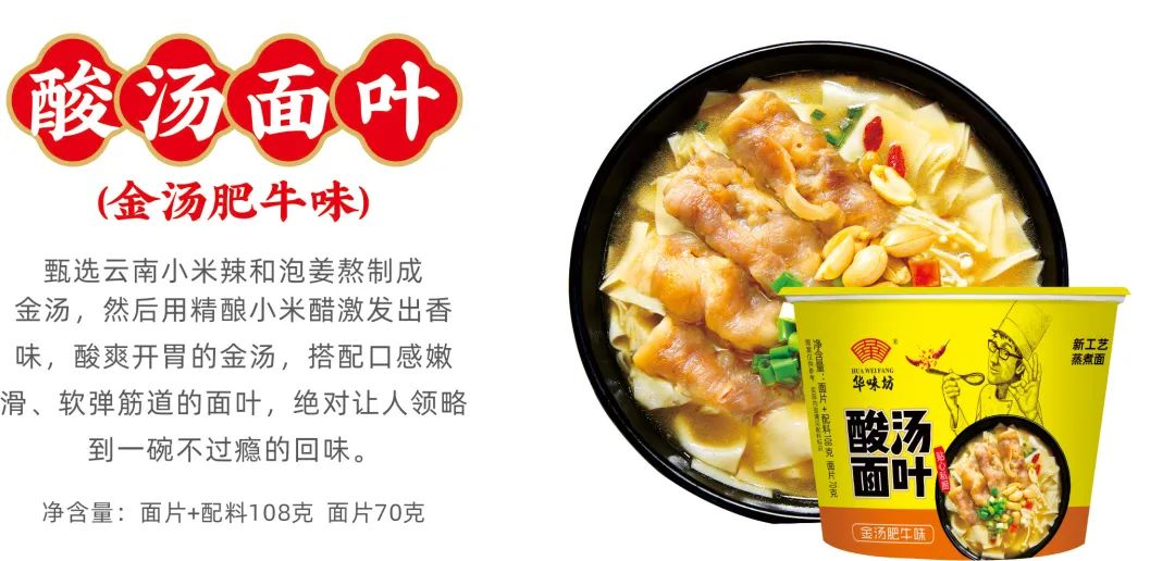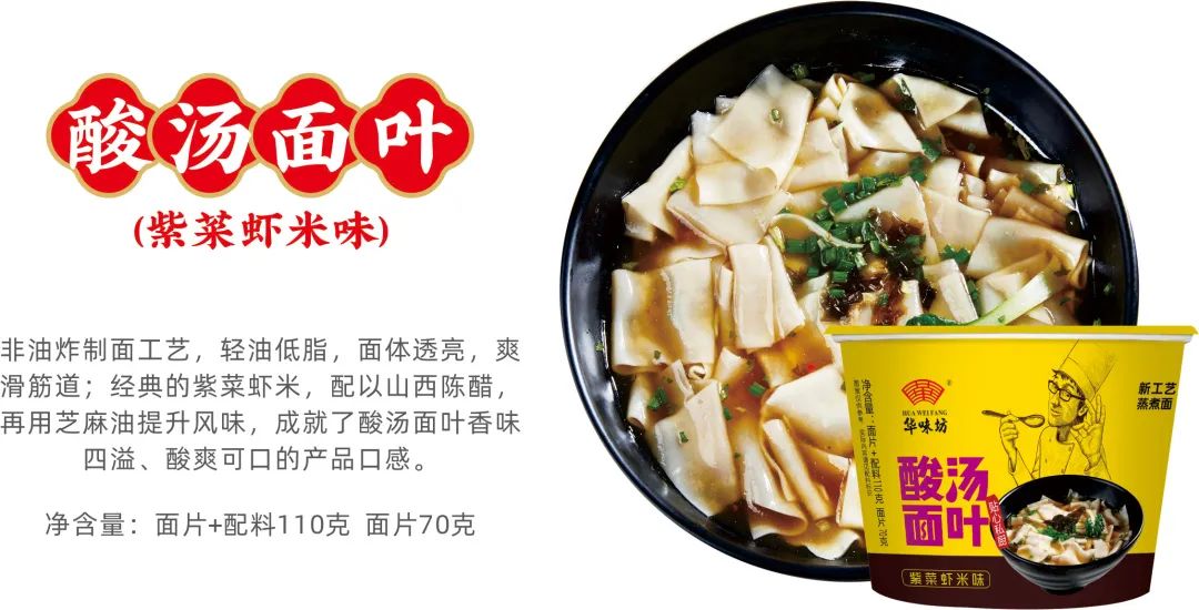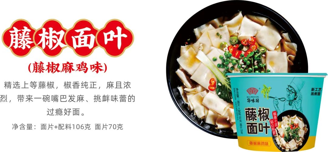 华味坊拥有先进的“0油炸蒸煮健康面”工艺,以光大中国特色美食为使命,研发出酸汤面叶、茄缘茄汁面等地方特色速食化美食;产品一经推出便在全国各地美食区域迅速出圈,获得经销商和市场双重认可。