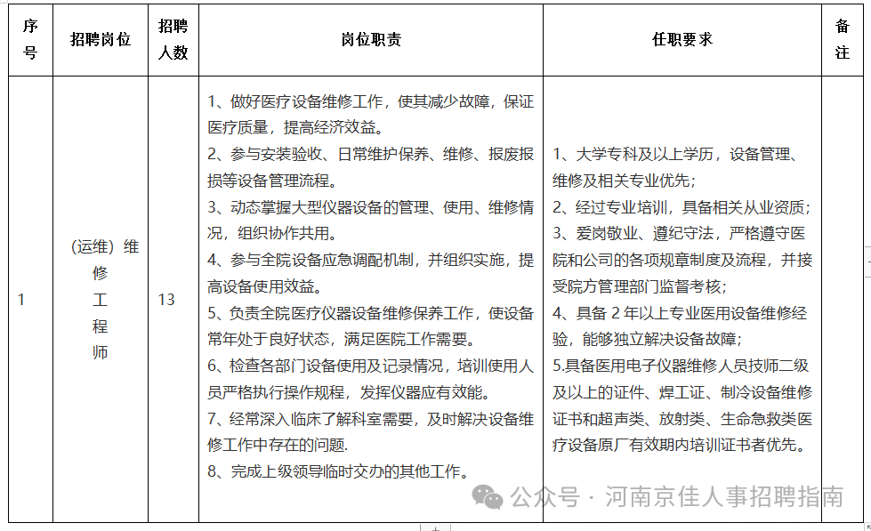 平顶山市平发健康产业发展有限责任公司 | 维修工程师(运维工程师) | 13人 |