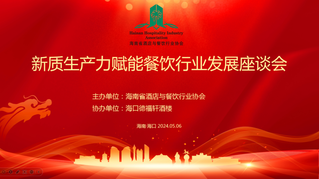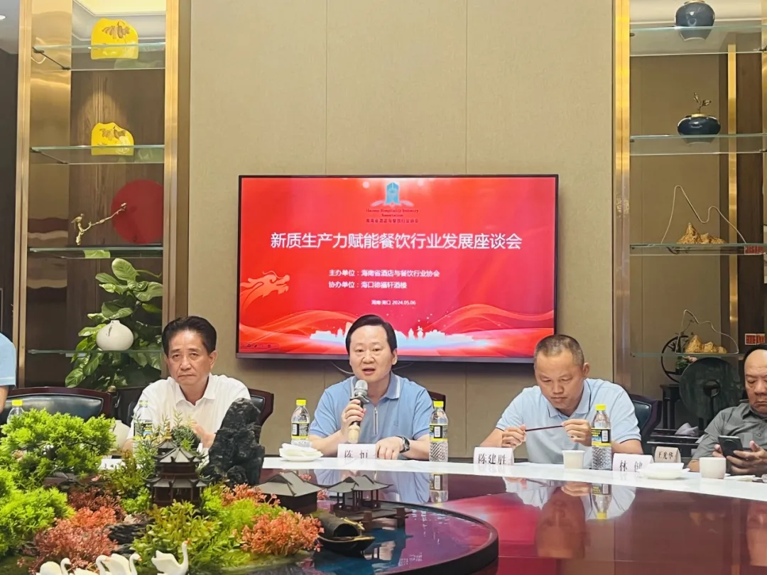 向“新”而行,以“质”为先。为了应对当前经济形势下海南餐饮业所面临的挑战与困难,共同探讨如何实现海南餐饮业健康快速的发展,2024年5月6日下午,由海南省酒店与餐饮行业协会召开的新质生产力赋能餐饮行业发展座谈会在海口德福轩酒楼举行。海南省酒店与餐协行业协会会长陈恒、常务副会长兼秘书长陈刚、副秘书长符史君,以及龙泉集团、皇马集团、三厨新海府、拾味集团、厨房好味、琼菜王、德福轩、小湘旺、琼菜人家、九毛九、蔚蓝时代、鲜锋餐饮、琼菜记忆、海南大院、新得利、川妹餐饮、琼州往事里、汇福隆、原味主张等重点餐饮企业董事长、总经理参加会议。