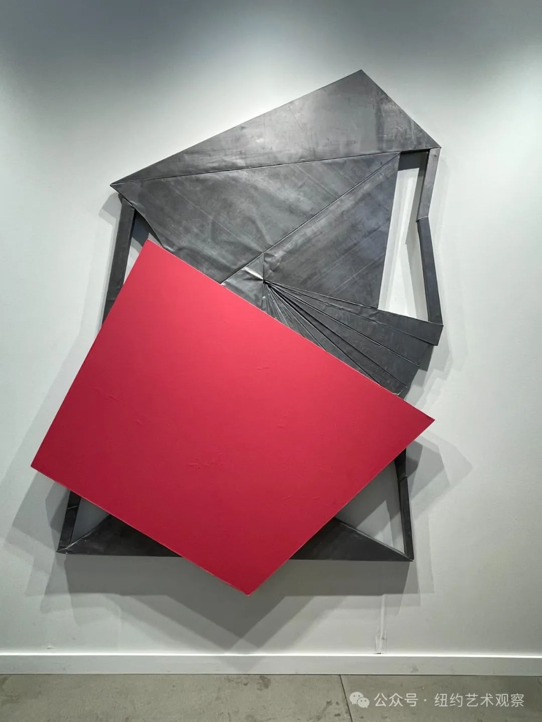 总部位于法国巴黎的贝浩登画廊(Perrotin Gallery),今次带来的曾经在纽约贝浩登画廊展览过的韩国艺术家李英培Lee Bae,看起来像是绘画及雕塑,其实主要是装置艺术作品:装置作品由整段整段的碳木拼装而成,墙上挂的貌似绘画的作品,其中两件也是碳木拼成,具有强烈的视觉冲击力。