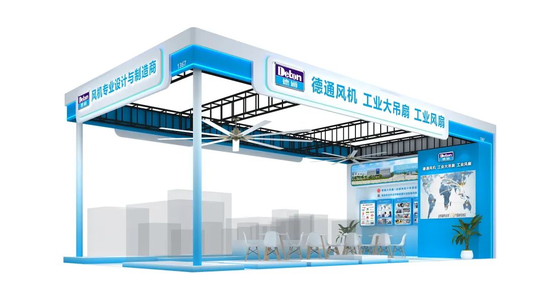 德通将在展会上亮相高效·专业·齐全的新能源行业配套风机、高大厂房空间通风降温德通大吊扇、岗位式通风降温风机风扇: