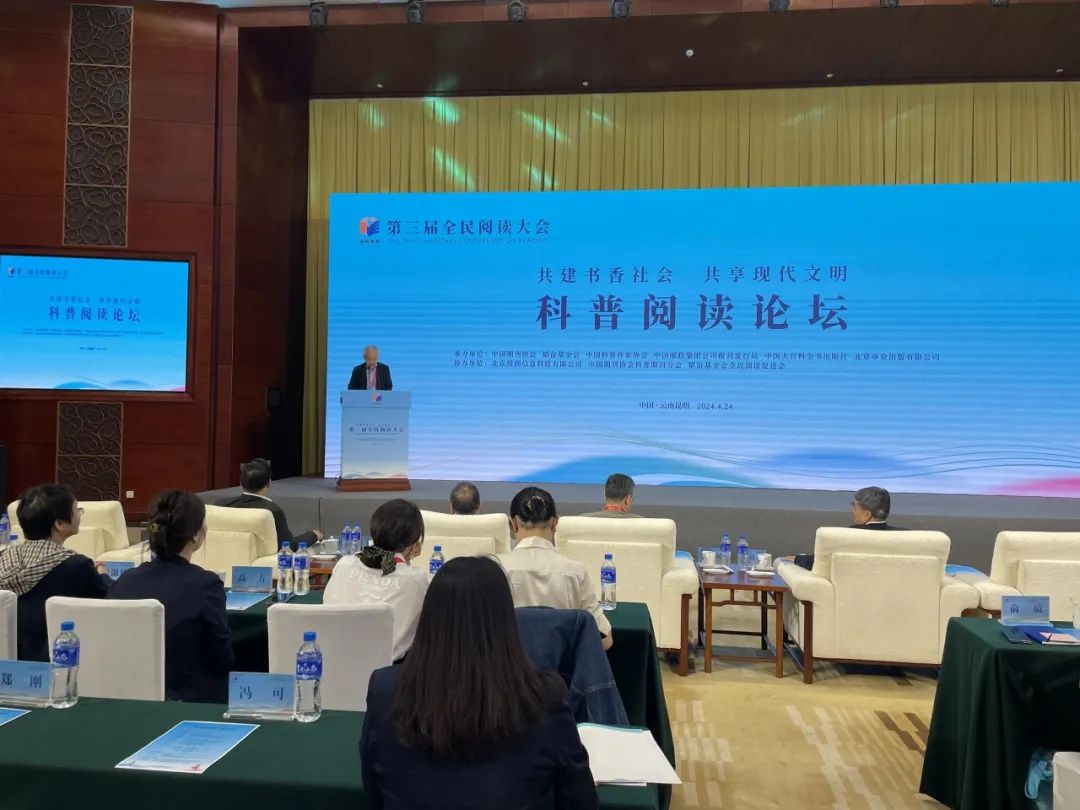 4月24日下午,第三届全民阅读大会·科普阅读论坛在云南昆明举行。本次论坛由中国期刊协会、韬奋基金会、中国科普作家协会、中国邮政集团有限公司报刊发行局、中国大百科全书出版社、北京卓众出版有限公司共同承办,北京得到信息科技有限公司、中国期刊协会科普期刊分会、韬奋基金会全民阅读促进会共同协办。