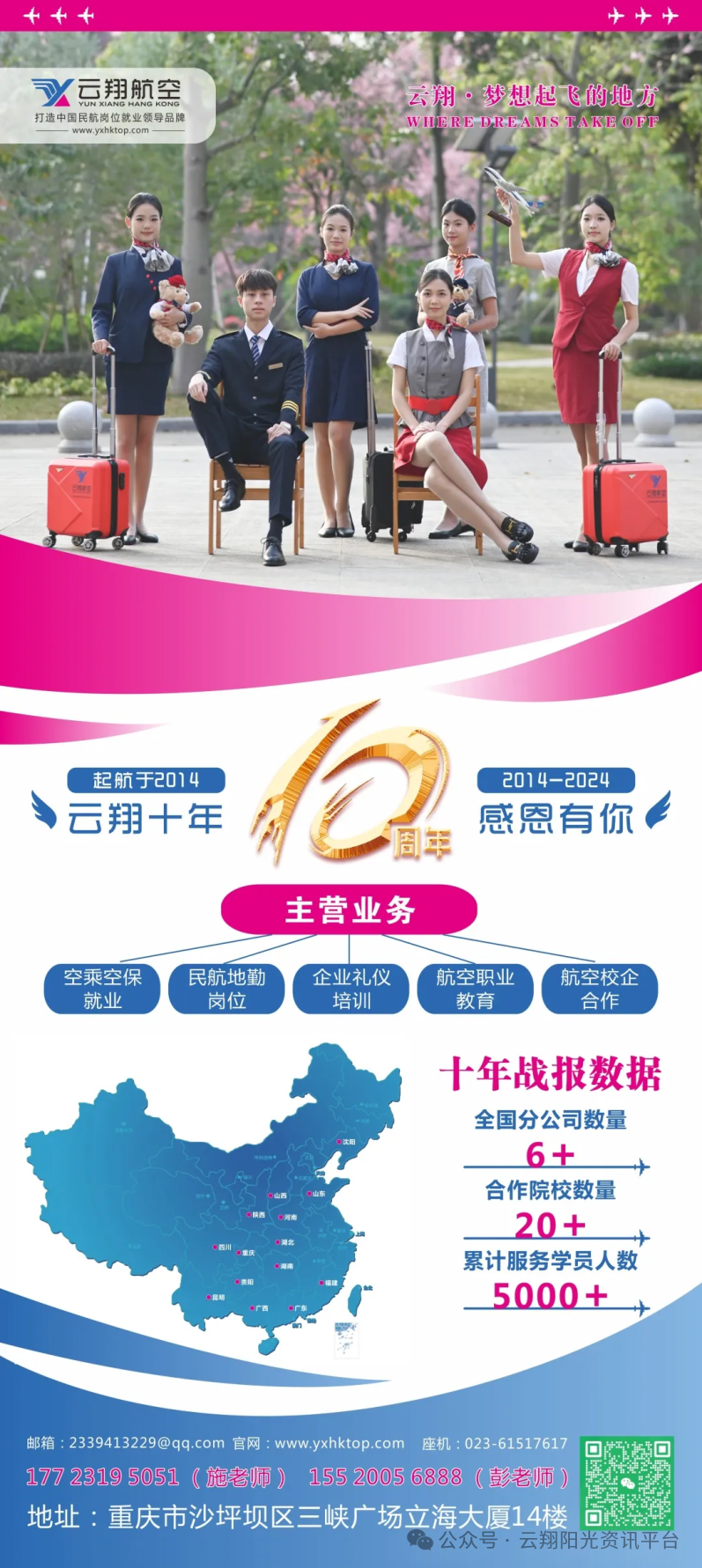 云翔航空授权委托机构或个人以本公司的名义开展我方集团业务,以我司授权委托书(加盖我司公章)为准,除本平台和官网以外的联系方式请在沟通后及时到我司实地了解,确保是我司工作人员(我司工作人员均有加盖我司公章的工作牌)。本平台从未涉及任何交易活动,仅为广大粉丝免费提供空乘招聘信息及相关线上咨询服务。如出现任何纠纷,请自行承担全部责任,与本平台无关。希望广大应聘者提高警惕,谨防上当受骗!