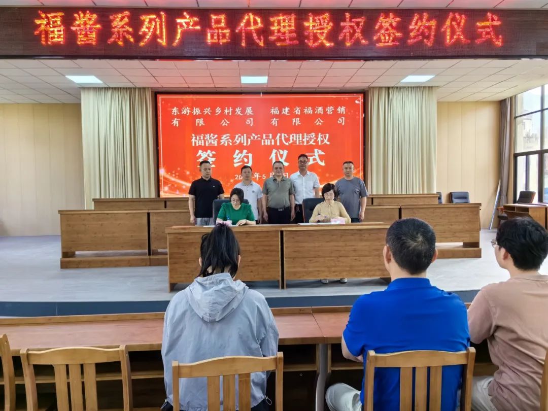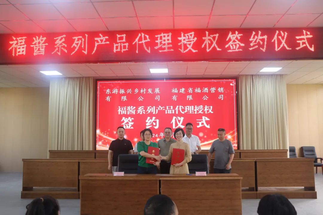 5月8日,东游振兴乡村发展有限公司与福建省福酒营销有限公司签署福酱系列产品代理授权协议,共同致力做足“土特产”文章,夯实乡村振兴的绿色支撑。