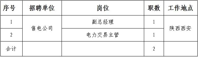 根据国家电投陕西公司发展需要,现面向集团公司系统内外进行招聘。具体事项公告如下: